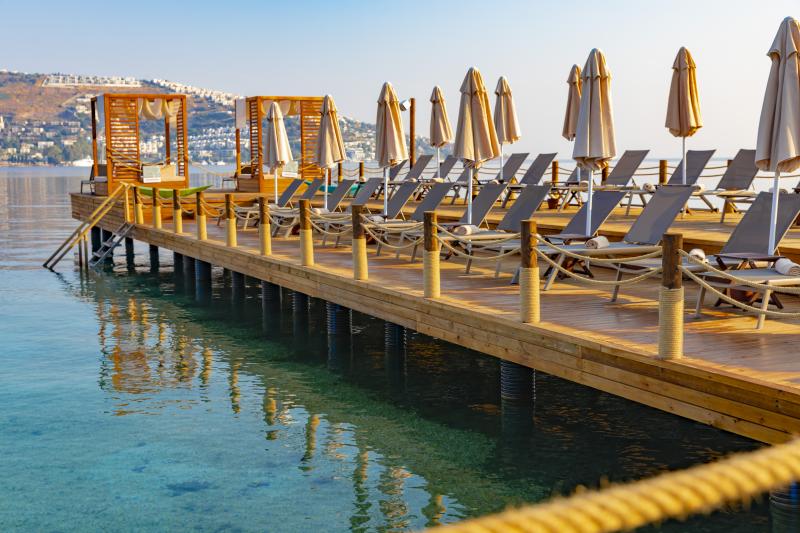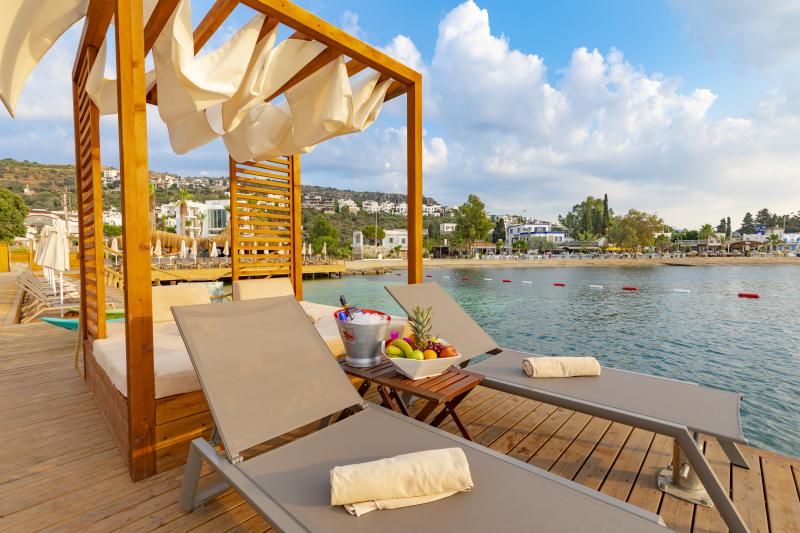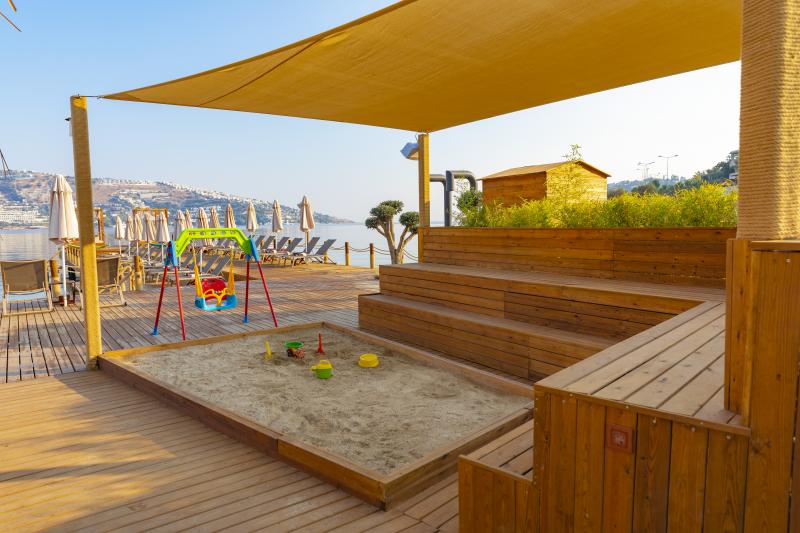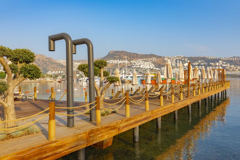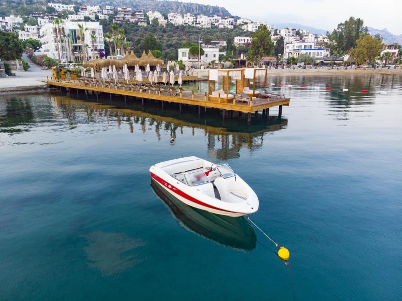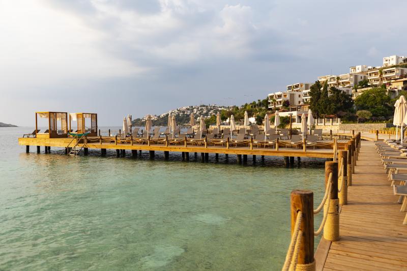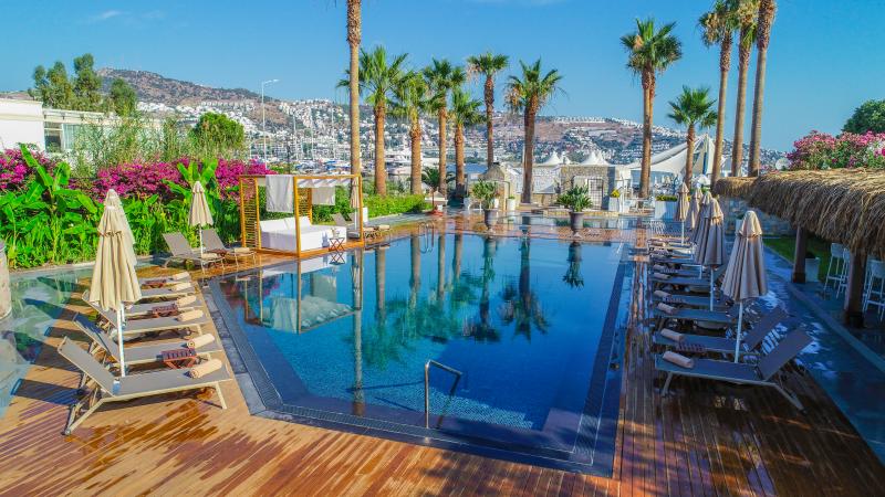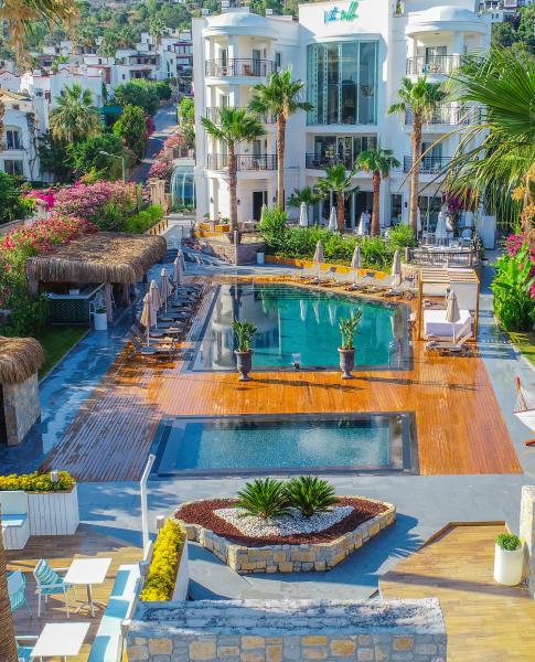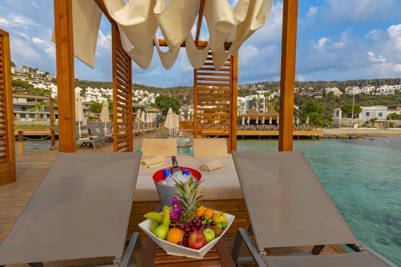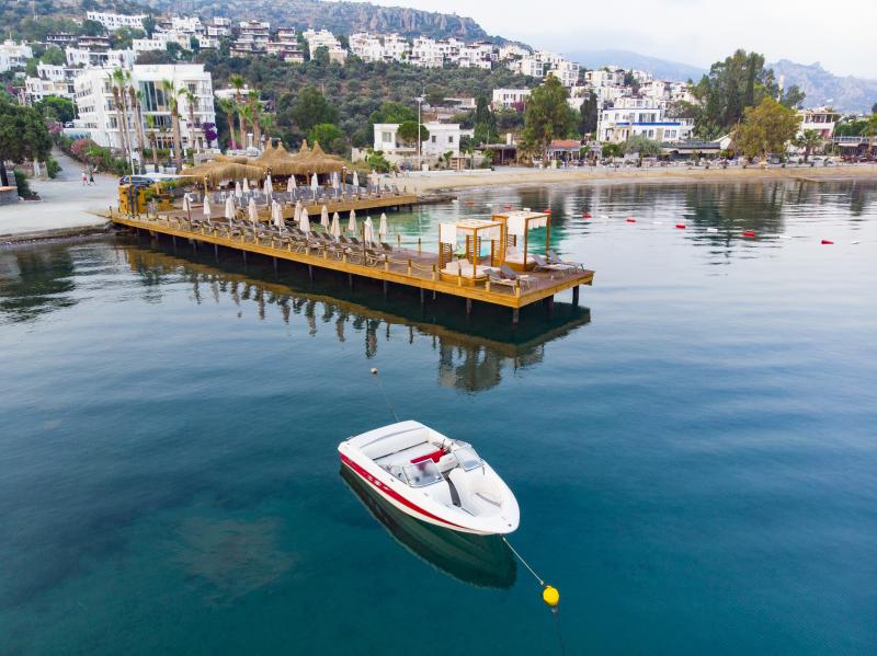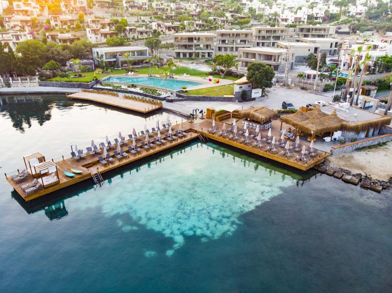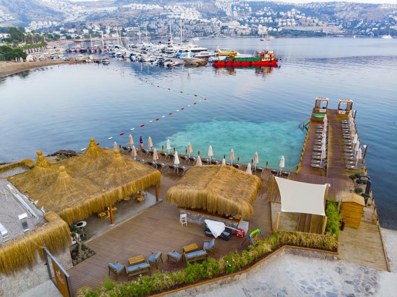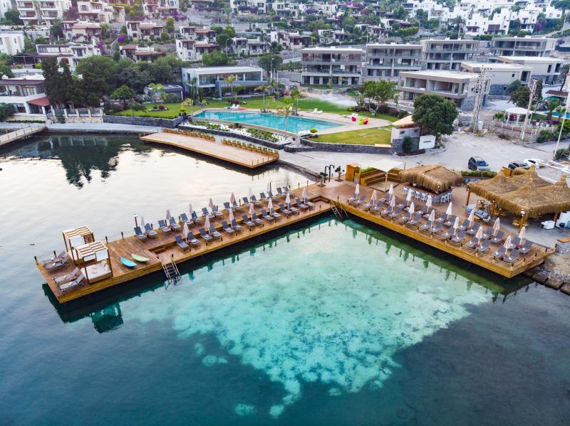 Lüksü konforla bir araya getiren tesis, görülmeye değer manzarası, 600 m2 uzunluğunda iskelesi ve plajıyla misafirlerine güneşin ve denizin tadını doyasıya çıkarma imkanı sunuyor. 2.050 m² alan üzerine kurulu tesis, kapalı havuz, hamam, sauna, buhar odası, masaj gibi olanaklarıyla Bodrum merkeze 19 km mesafede bulunuyor. Tesiste çocuk misafirler için çocuk havuzu bulunuyor.
